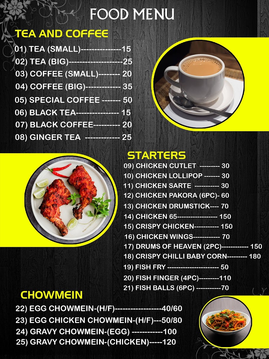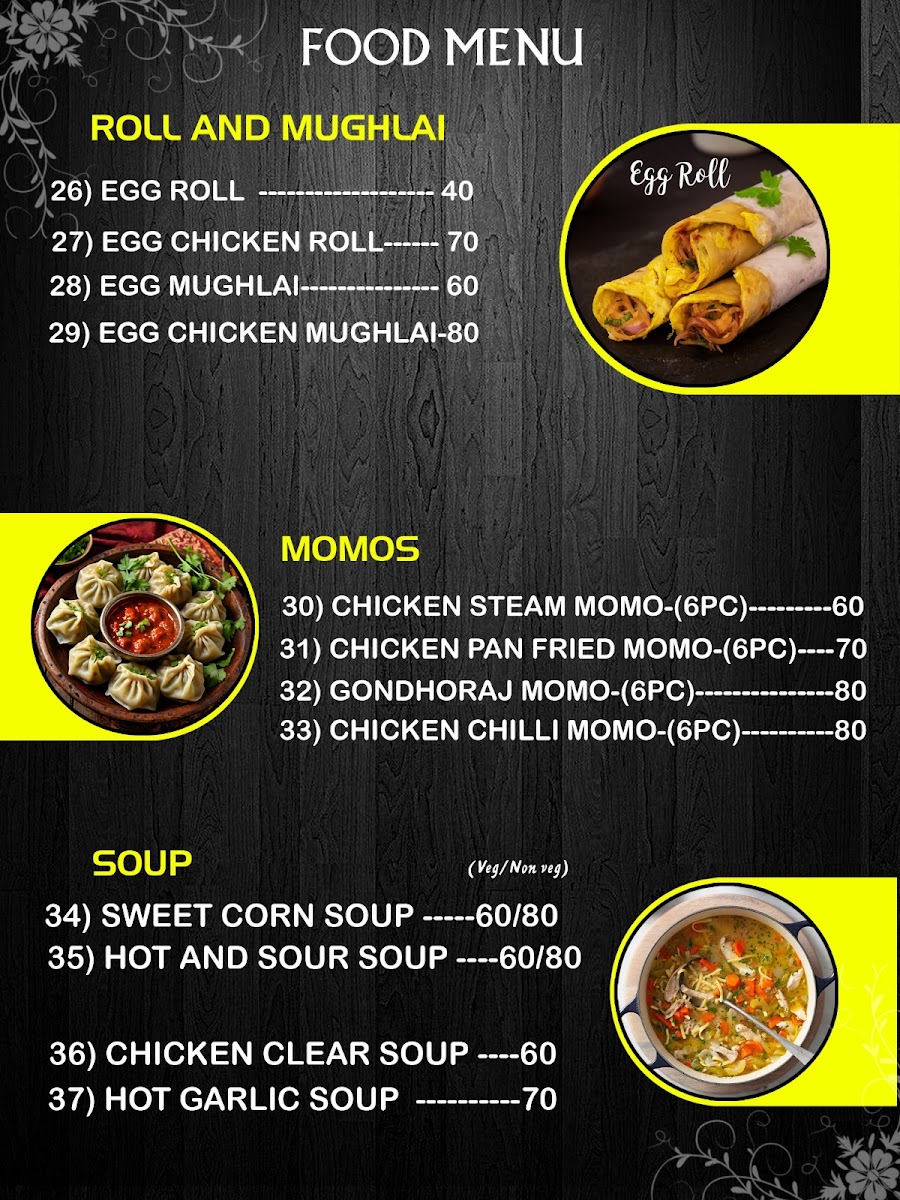 The real culinary stars of the cafe, however, are undoubtedly the Momos. With options like the Chicken Steam Momos (6 pieces for ₹60.00) and the zesty Chicken Chilli Momos (6 pieces for ₹80.00), you’re sure to find a dish that delights. Don't forget to try the Gondhoraj Momos, infused with a traditional flavor that explodes with every bite—an offering priced at ₹80.00 that follows the recipe of classic Bengali street food, now elevated.